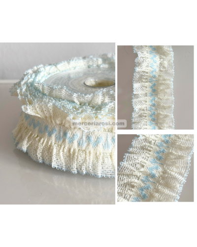 Nuevo Quick view Añadir al carrito Goma fruncida con dibujo... Precio 3,00 € Goma fruncida decorativa en color crudo con detalles azul claro, ideal para confección y costura creativa. Está fabricada en tejido elástico...