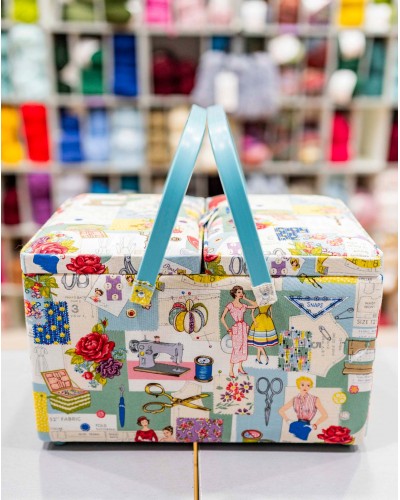 Quick view Añadir al carrito Costurero con asa y tapa Precio 38,50 € Costurero de algodón acolchado con motivos decorativos de costura sobre un fondo blanco. Este costurero no solo es funcional, sino que también...