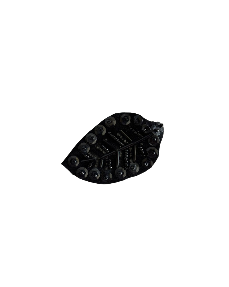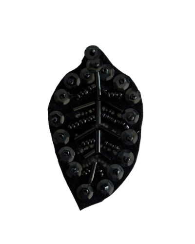 Diseñada con cuentas y cristales negros cuidadosamente dispuestos, aporta un acabado lujoso y artesanal ideal para vestidos, chaquetas, bolsos y accesorios.