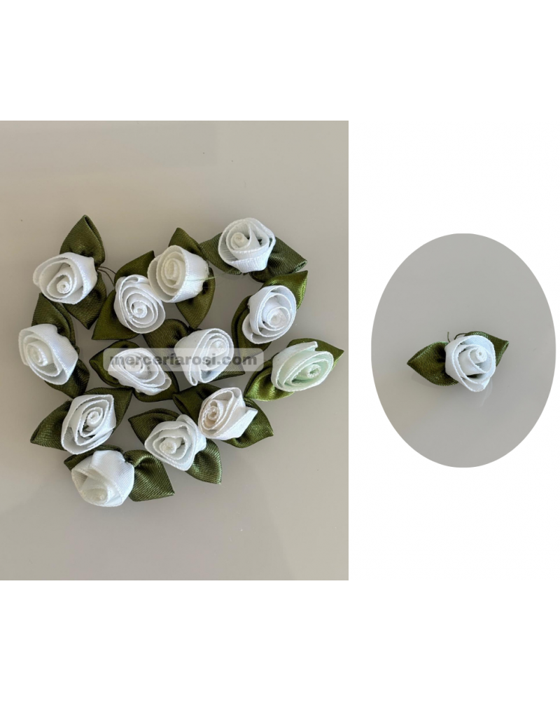 Cada flor está cuidadosamente formada con cinta de raso de acabado brillante y complementada con hojas en tono verde, logrando un efecto natural y muy vistoso.