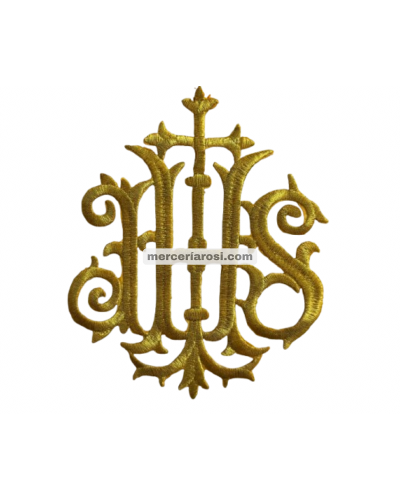 Hecha con hilos de alta calidad y un elegante bordado dorado, este aplique está pensado para destacar en ornamentos eclesiásticos, como estolas, casullas o manteles de altar.