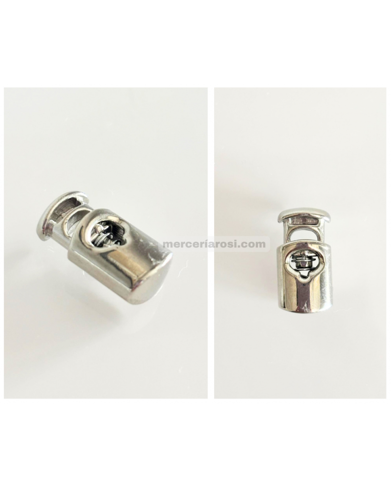 La tanca barril plateada es ideal para ajustar y fijar cordones, cintas y elásticos de forma cómoda y segura.