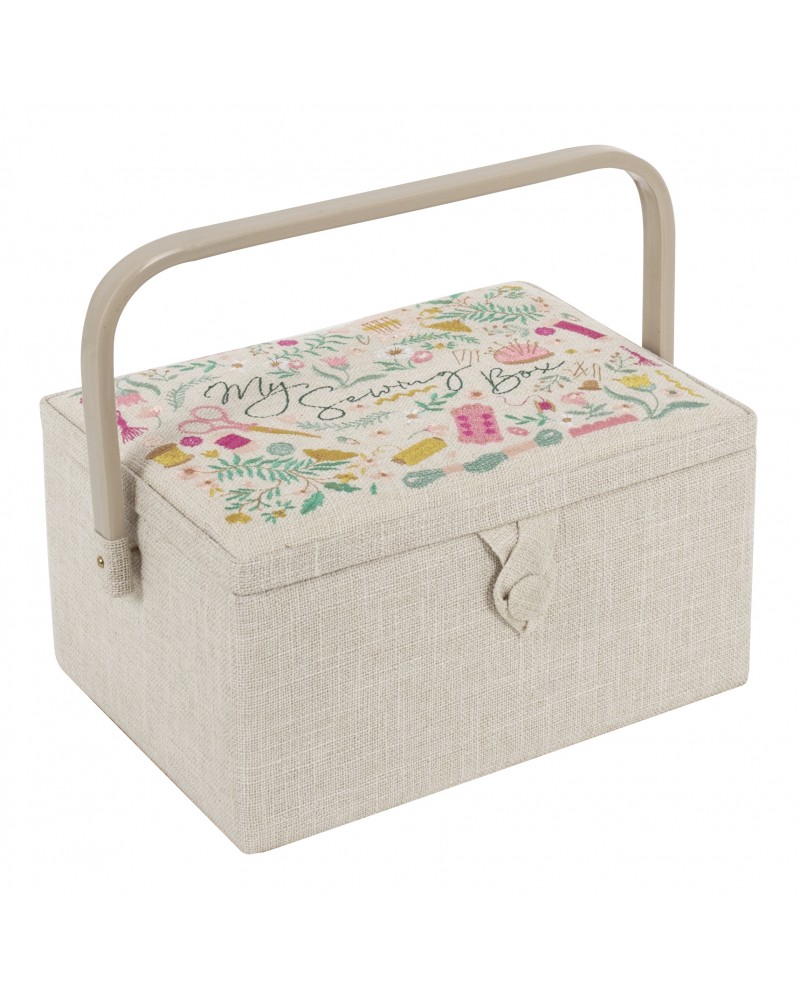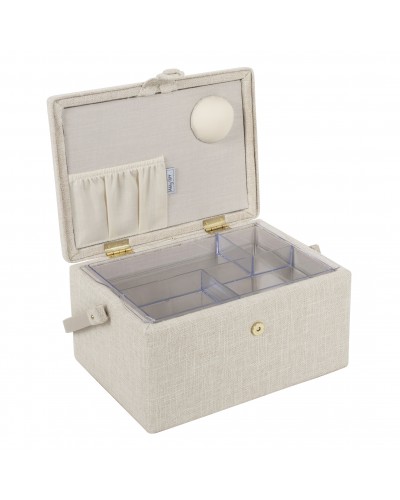 Mantén todos tus accesorios de costura perfectamente organizados con esta elegante caja de costura en color lino natural.