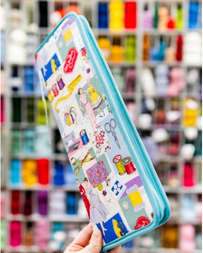 Este estuche te permite mantener tus agujas de tricotar seguras y organizadas combinando la elegancia del estilo vintage con un toque de frescura en azul turquesa.