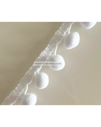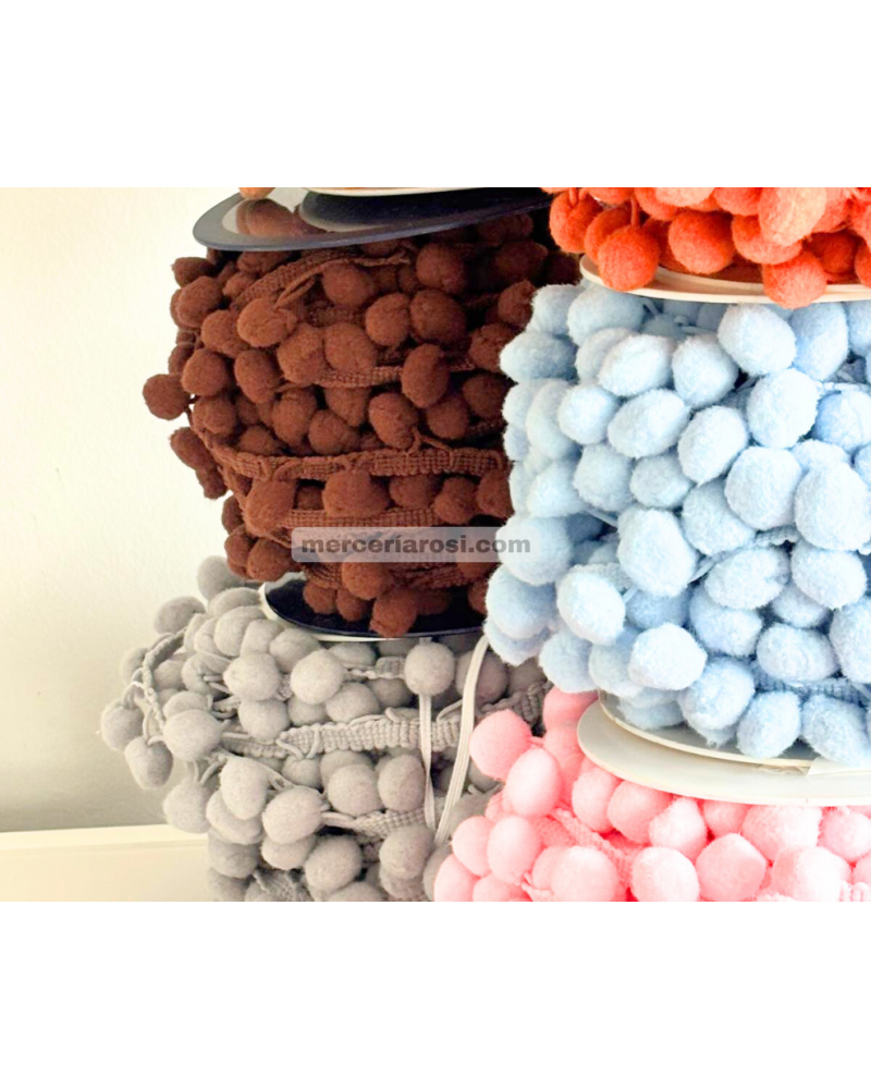 Fabricado con pompones suaves y uniformes, cosidos sobre una cinta resistente que facilita su colocación.