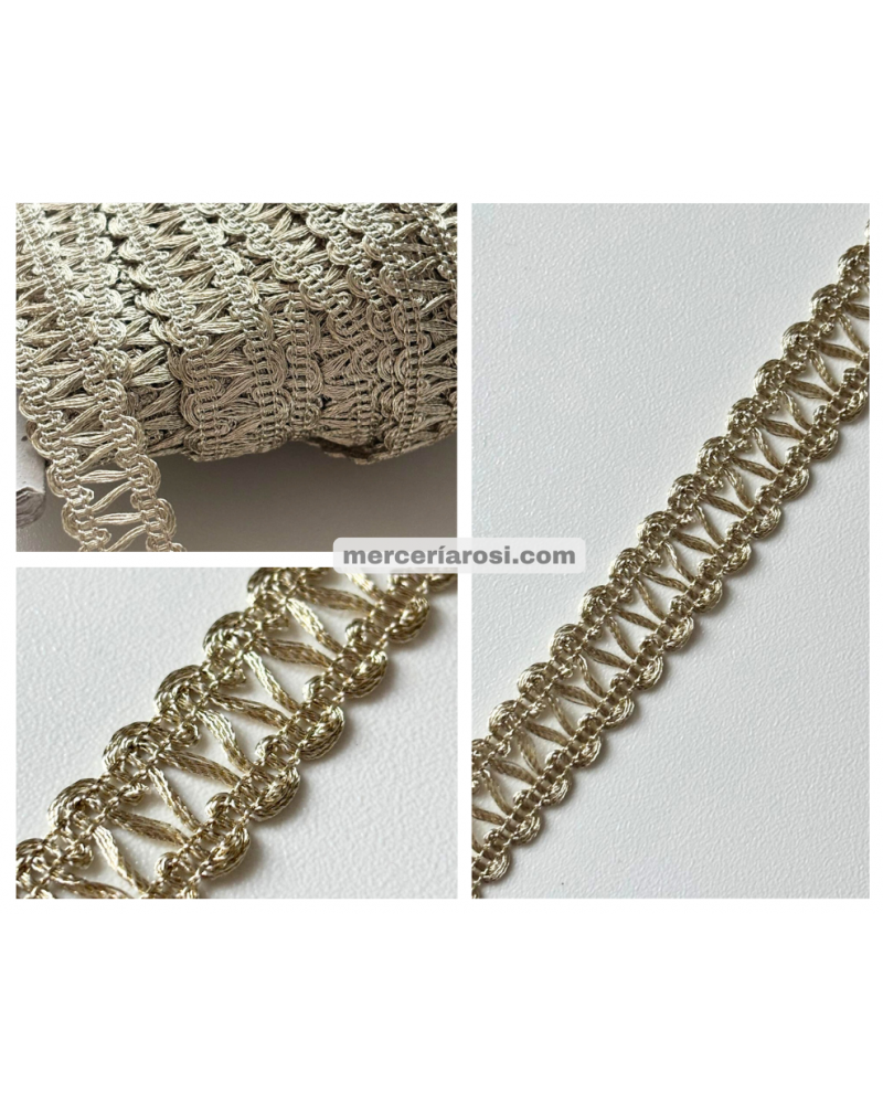 El galón metalizado decorativo es un adorno textil elegante y llamativo, ideal para aportar un acabado sofisticado y distintivo a todo tipo de prendas y proyectos de confección.