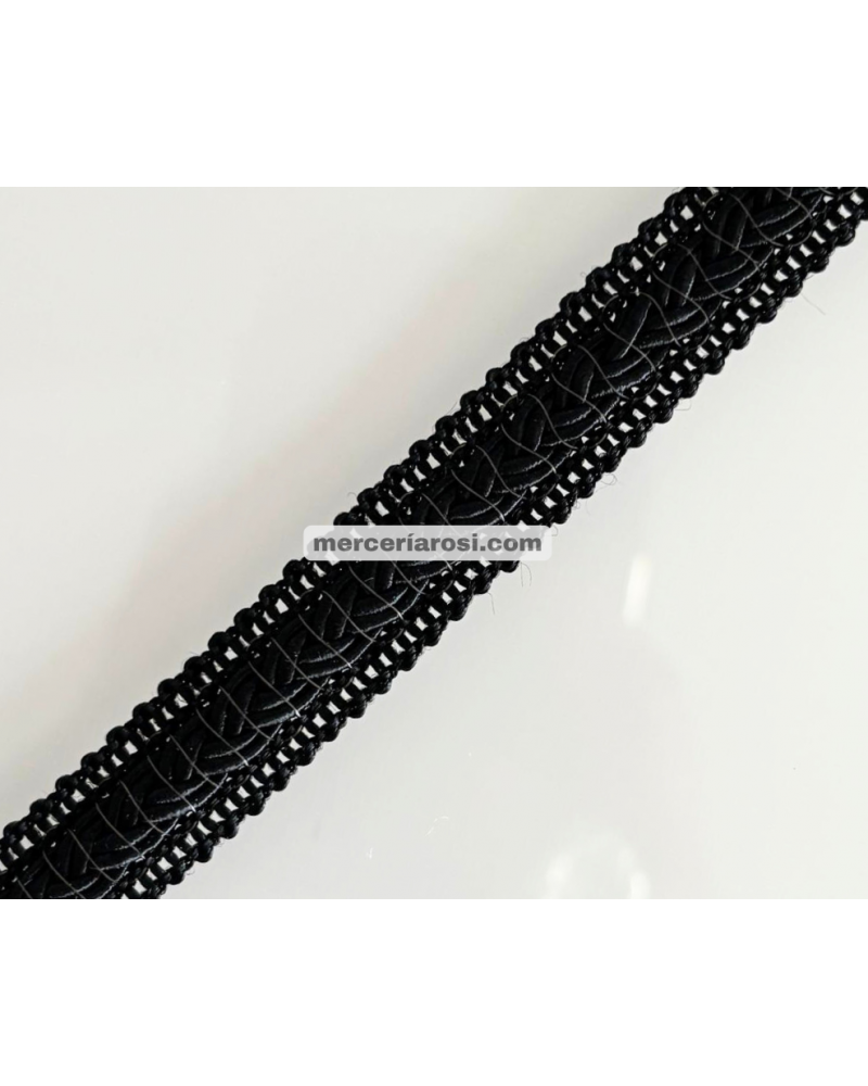 Este galón se caracteriza por su elegante diseño trenzado, que aporta un acabado clásico y decorativo a cualquier prenda o proyecto textil.